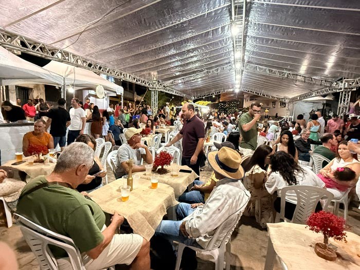 A programação contou com duas grandes atrações musicais, que animaram a noite e reforçaram o clima festivo do encontro. Barracas com pratos regionais e opções variadas garantiram ao público uma experiência gastronômica completa, valorizando a culinária local e fortalecendo o comércio da cidade.