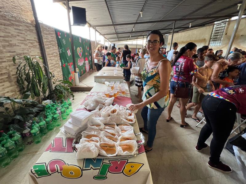 Além dos brinquedos são distribuídos lanches, cestas básicas e alimentos para as famílias carentes. As crianças também têm a oportunidade de participar de diversas brincadeiras.