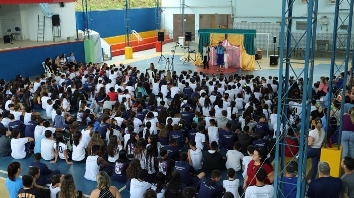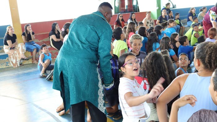 23 de setembro – Laranjal (MG): no CEM Norberto Berno, o espetáculo levou encanto a crianças, adolescentes e adultos, com muita interação e momentos de pura alegria.