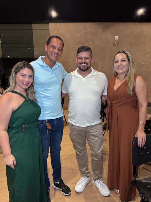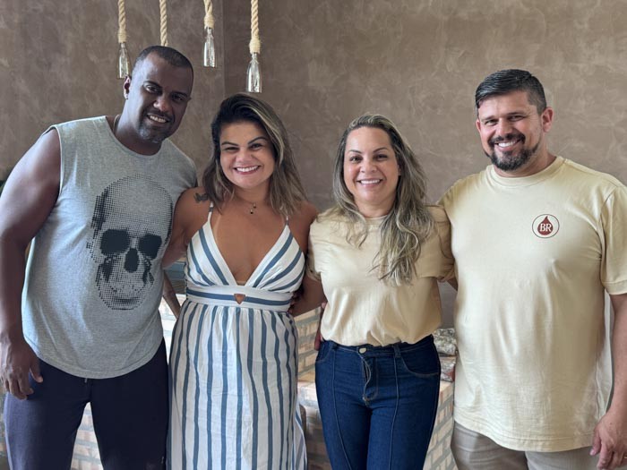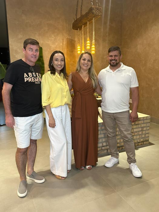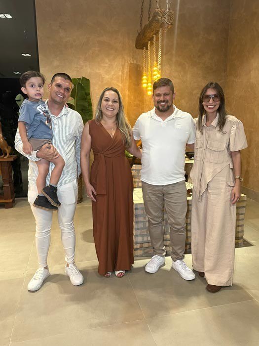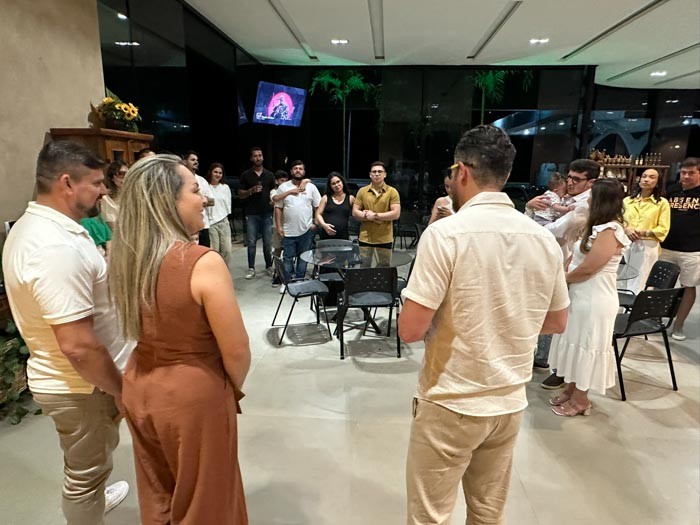 Durante a inauguração, o Pastor Carlos Eduardo Cadu e sua esposa Érica realizaram um momento de bênção, dedicando o empreendimento à proteção e prosperidade divina.