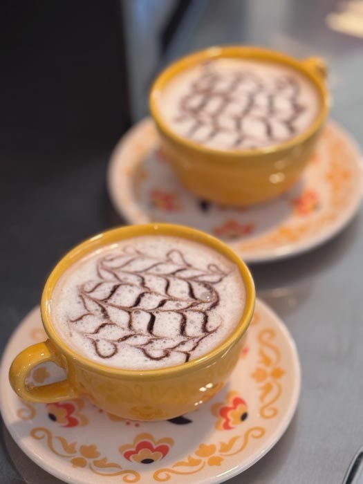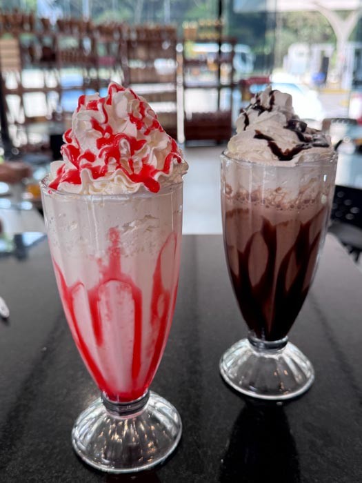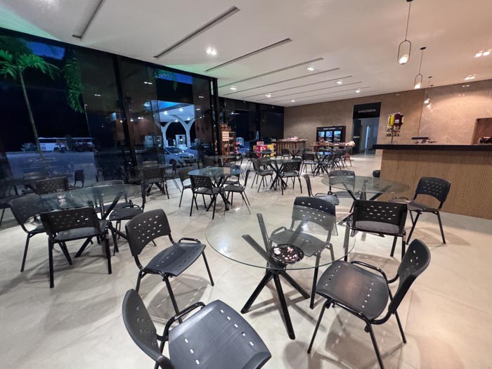 • Café da manhã: café coado, cappuccino, frappuccino, café expresso, acompanhado de pães de queijo, pães na chapa e outras delícias da cafeteria.