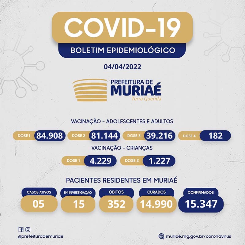 O fim de semana teve a confirmação de apenas um novo caso de Covid em Muriaé. O número de pacientes ativos totaliza cinco pessoas ainda em recuperação da doença.