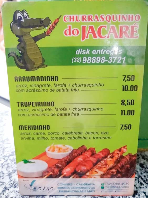 O Churrasquinho do Jacaré também atende delivery, através do telefone (32) 98898-3721.