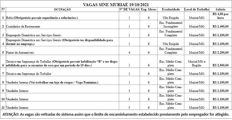 Confira as vagas de emprego divulgadas pelo SINE nesta terça-feira (19)