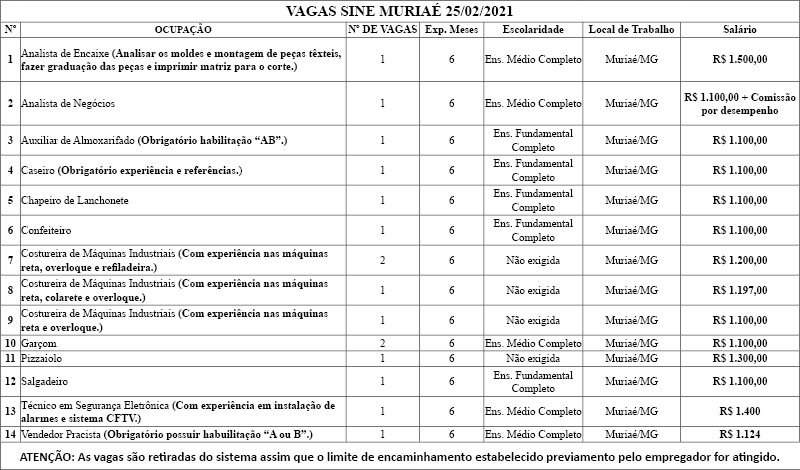 Confira as vagas de emprego divulgadas pelo SINE nesta quinta-feira (25)