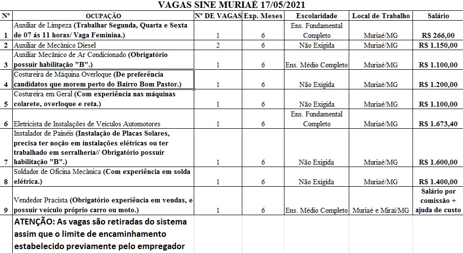 Confira as vagas de emprego divulgadas pelo SINE nesta segunda (17)