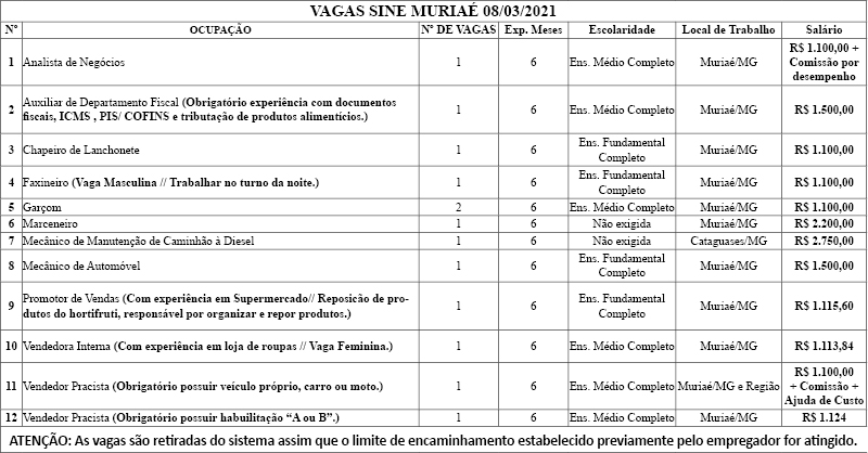 Confira as vagas de emprego divulgadas pelo SINE nesta segunda-feira (08)