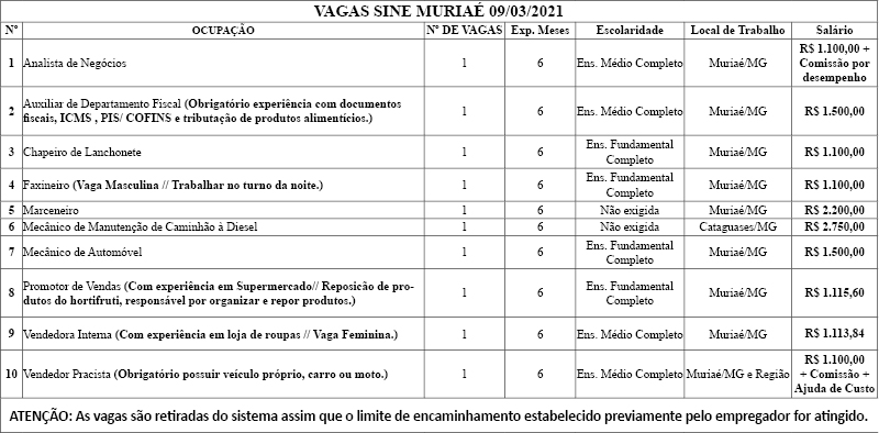 Confira as vagas de emprego divulgadas pelo SINE nesta terça-feira (09)