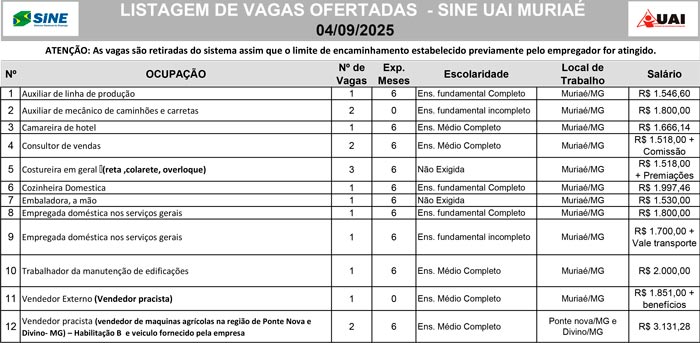 Confira as vagas de emprego ofertadas pelo SINE nesta quinta-feira (4)