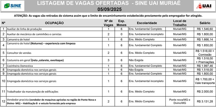 Confira as vagas de emprego ofertadas pelo SINE nesta sexta-feira (5)