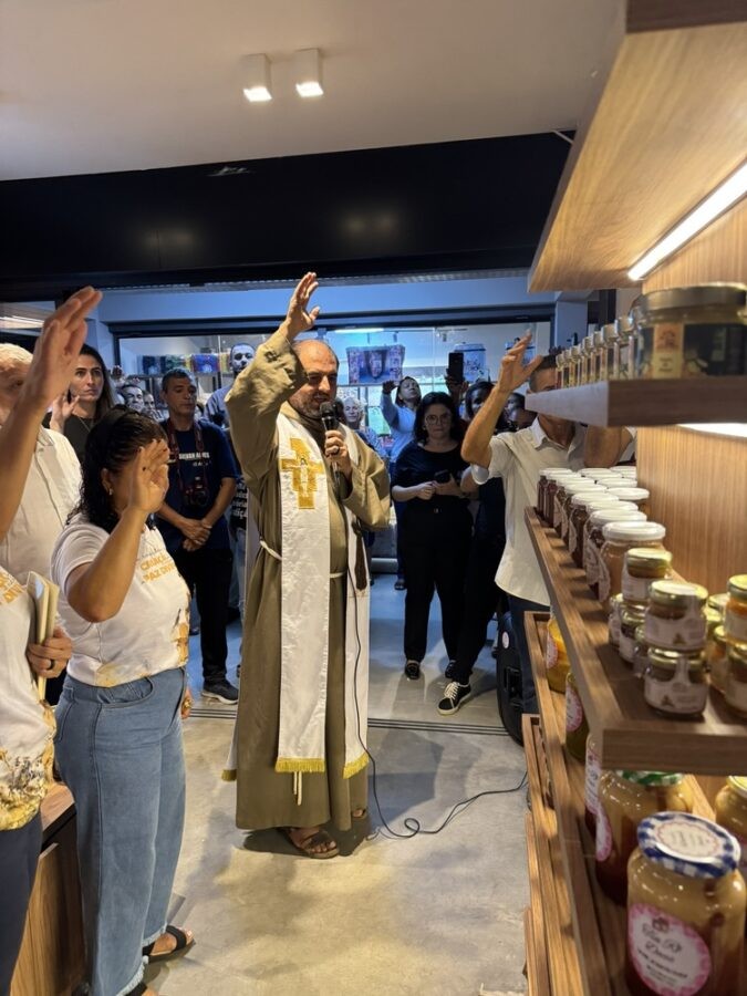 A celebração teve a bênção do Frei Gilberto, que emocionou os presentes ao pedir por prosperidade e união. “Que este espaço seja abençoado e frutifique com sucesso, prosperidade e gratidão. Aqui, cada produto vendido traz o esforço e a dedicação de mãos que trabalham com amor pela terra e pela comunidade”, disse o Frei.