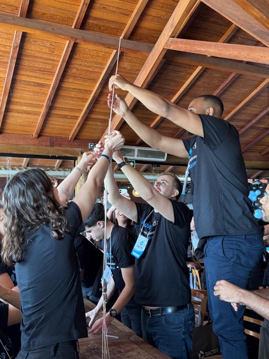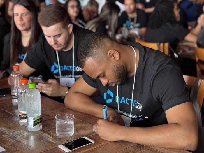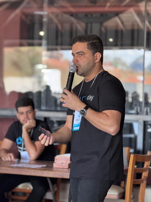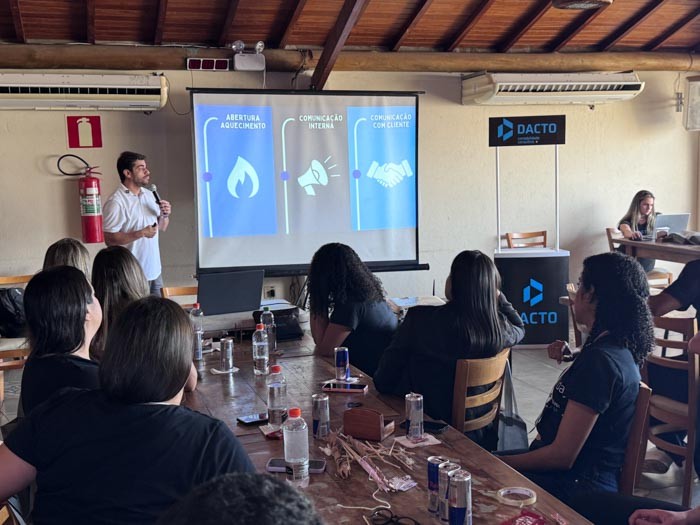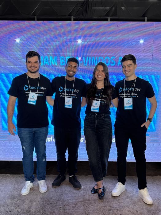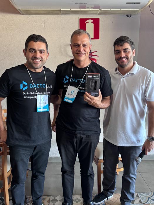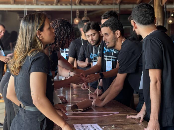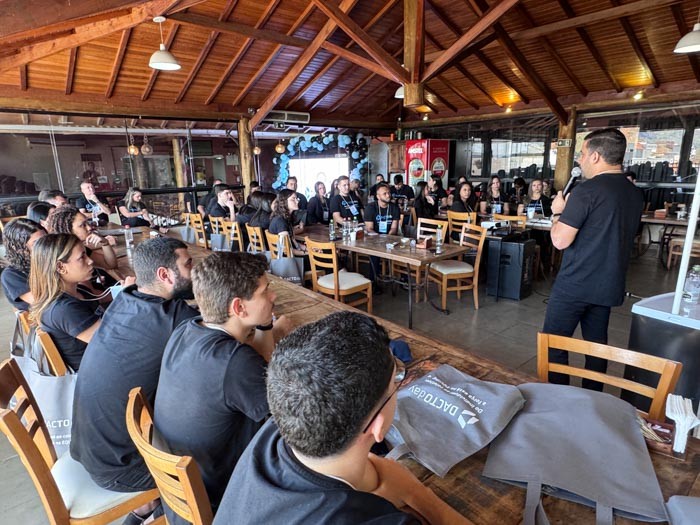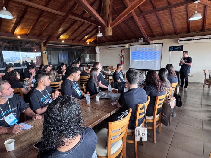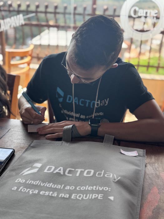 Na sequência, o sócio Caetano Rocha destacou o comprometimento da equipe como base para a satisfação dos clientes. “São eles que fazem a entrega das demandas e garantem a excelência no dia a dia. Se hoje o cliente está satisfeito com o nosso serviço, é porque temos uma equipe comprometida. Por isso, nada mais justo do que tirá-los da operação e trazê-los para esse dia de imersão, em que a visão é lapidada e o propósito do Dacto Day fica ainda mais claro: entregar um serviço de excelência para o cliente.”
