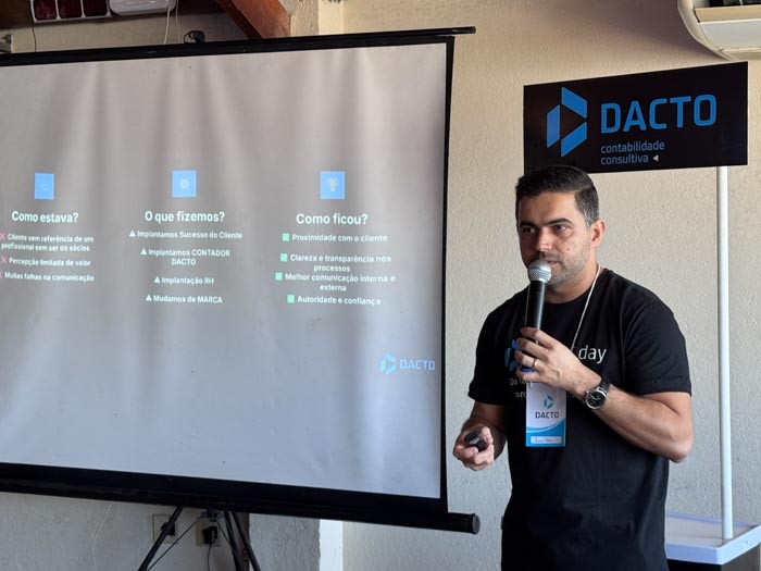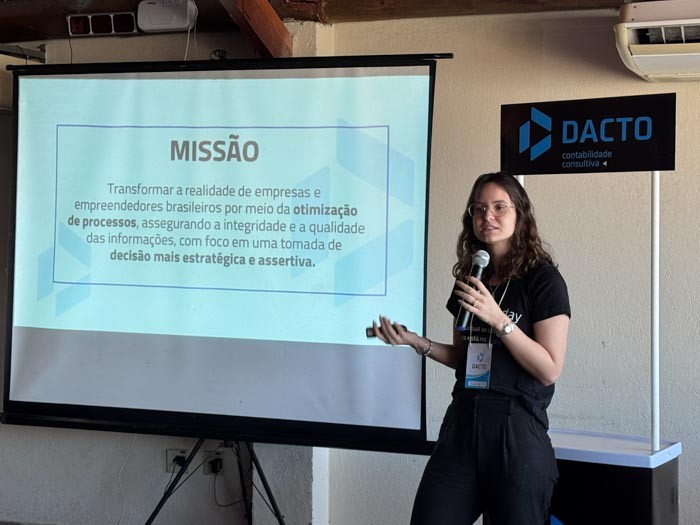 Encerrando as falas, Mariana Rocha enfatizou a valorização dos colaboradores como eixo central da imersão. “Hoje está acontecendo aqui o nosso Dacto Day 2025, uma imersão voltada exclusivamente para a nossa equipe. É um dia de treinamentos, dinâmicas, muita informação e conteúdo, além de revisitar a história da Dacto, porque nada acontece sem os nossos colaboradores. É um dia para parar um pouco e fazer com que eles se sintam especiais, como de fato são. Vem acompanhar todo o nosso conteúdo: muita coisa bacana está acontecendo aqui e eles estão super envolvidos com o evento.” Com presença em diversos estados do país, a Dacto, Contabilidade Consultiva já reúne dezenas de profissionais que atuam de forma integrada. O Dacto Day 2025 reforçou a estratégia da empresa de investir continuamente em pessoas para que a excelência chegue até os clientes, consolidando um trabalho que alia conhecimento técnico, inovação e atendimento humanizado.