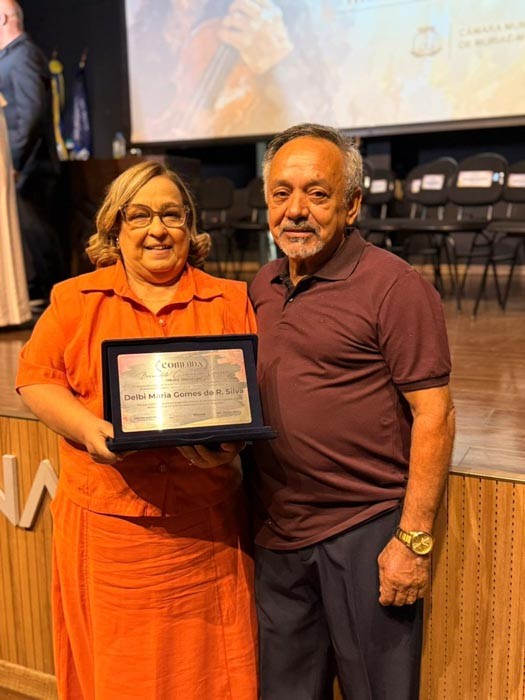 A Câmara de Muriaé homenageou Delbi Maria Gomes de Rezende Silva durante a solenidade da Comenda Bernadete Carneiro Garcia – Mulher Muriaeense 2026, reconhecendo sua trajetória marcada pela vocação para o ensino e pelo compromisso com a formação de gerações.