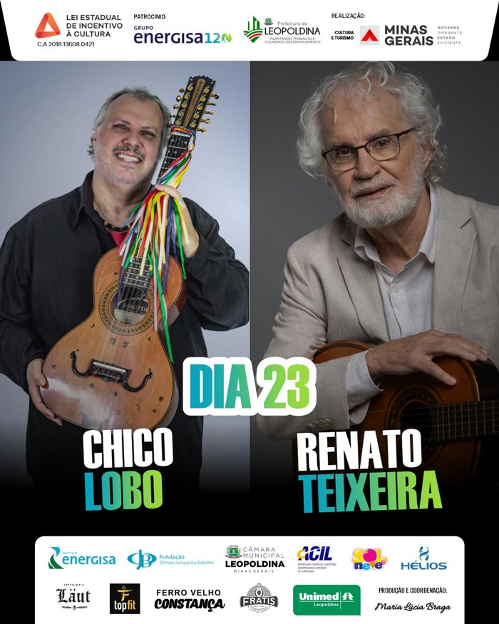 A abertura oficial será na quarta-feira (23), com dois grandes nomes da música brasileira: Chico Lobo, um dos maiores violeiros do país, e Renato Teixeira, um símbolo da cultura caipira e autor do clássico Romaria, eternizado na voz de Elis Regina.