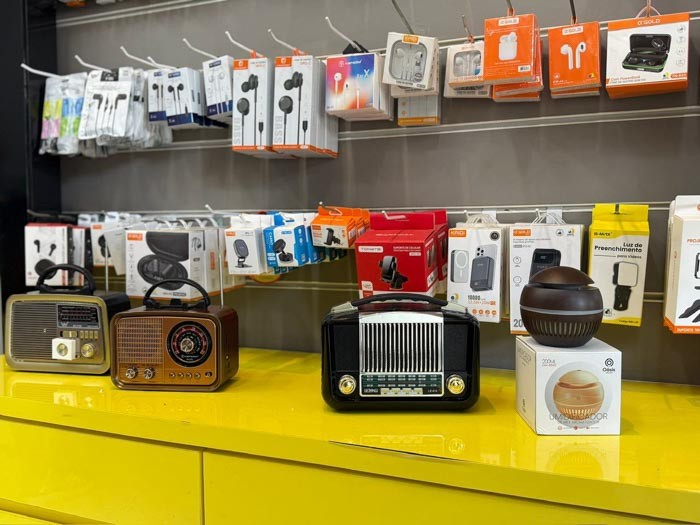 Entre os produtos disponíveis estão capinhas, películas, carregadores — inclusive modelos sem fio —, caixas de som, microfones e outros itens que ajudam a tornar a rotina mais prática para quem utiliza dispositivos eletrônicos no trabalho, no lazer ou na comunicação.