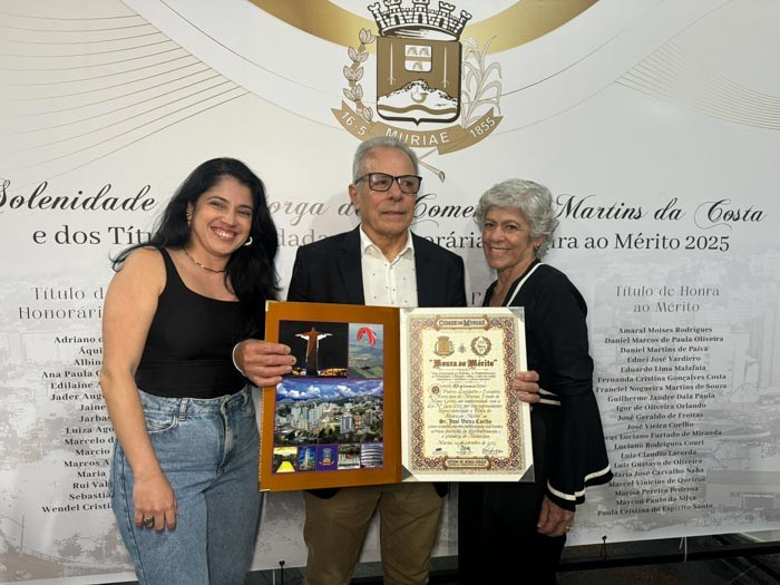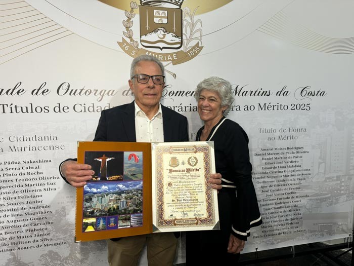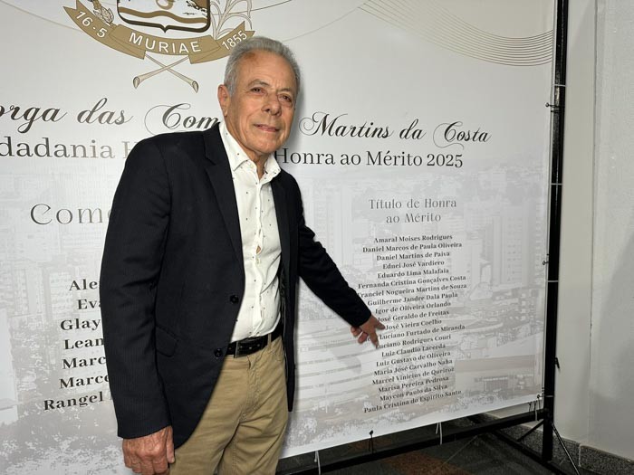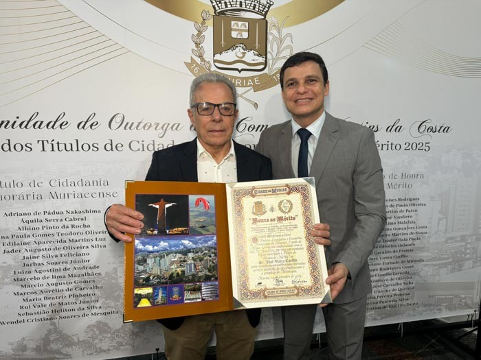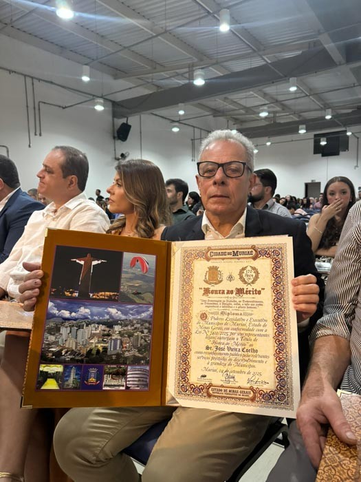 Na noite de homenagens do Dia do Muriaeense, a Câmara Municipal também destacou histórias de empreendedorismo. O comerciante José Vieira Coelho recebeu o Título de Honra ao Mérito.