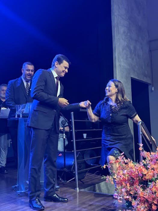 Com emoção, Karina Agostini Fraga agradeceu ao vereador Reginaldo Roriz pela indicação, destacando a alegria de ver seu trabalho reconhecido e reafirmando seu compromisso em continuar cuidando das pessoas com responsabilidade, sensibilidade e amor pela medicina.