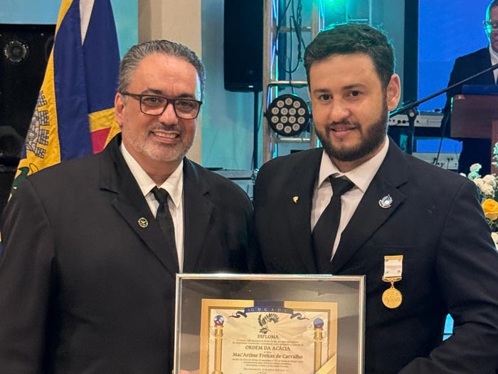 A celebração do Dia do Maçom, realizada no último sábado com a presença das quatro lojas maçônicas da cidade, foi também oportunidade para homenagens especiais. A Loja Ad Gloriam Et Sapientiam nº 97 agraciou o irmão Mac Arthur Freitas de Carvalho com a Comenda da Ordem da Acácia, em reconhecimento à sua assiduidade e ao compromisso com os ideais da Maçonaria.