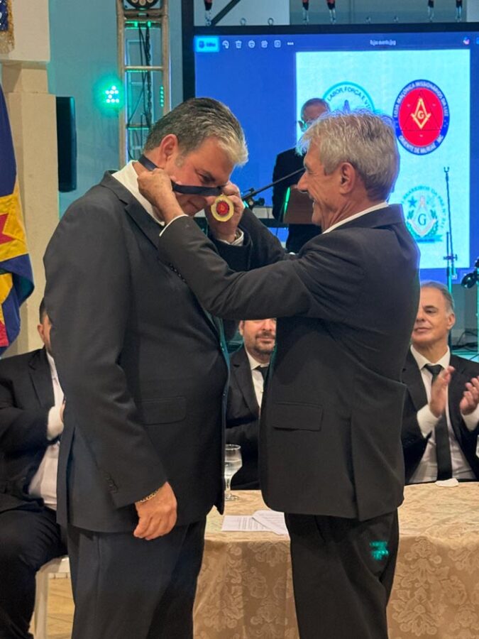 O empresário muriaeense Maico de Almeida Fonseca, de 51 anos, recebeu a Comenda de Mérito Irmão Gil Ferreira de Medeiros, em solenidade realizada pela Loja Missionários da Luz, que destacou sua atuação na administração e sua dedicação à Ordem.