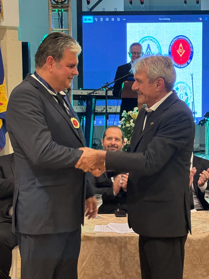 O empresário muriaeense Maico de Almeida Fonseca, de 51 anos, recebeu a Comenda de Mérito Irmão Gil Ferreira de Medeiros, em solenidade realizada pela Loja Missionários da Luz, que destacou sua atuação na administração e sua dedicação à Ordem.