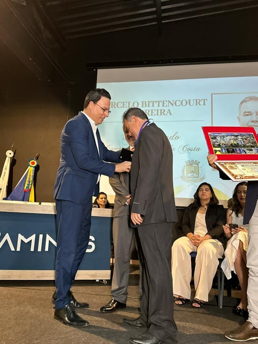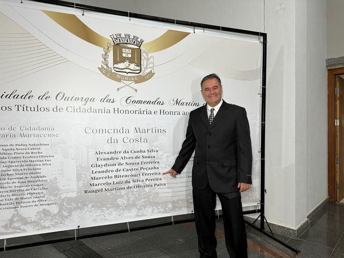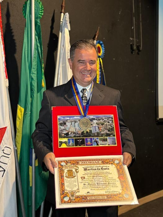 A homenagem foi concedida pela Presidência da Câmara, liderada pelo vereador Evandro Cheroso, gesto que Marcelo recebeu com gratidão e sentimento de compromisso renovado com a cidade.