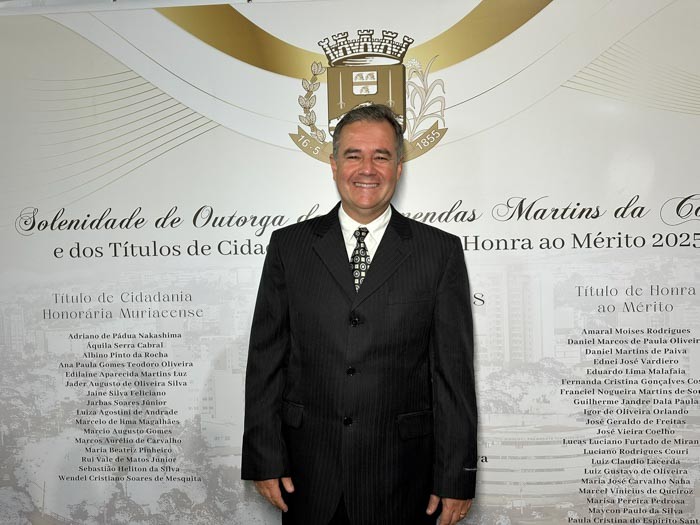 O setor empresarial também teve destaque na cerimônia que abriu as comemorações do Dia do Muriaeense. O empresário Marcelo Bitencourt Ferreira foi agraciado com a Comenda Martins da Costa, maior distinção do Legislativo muriaeense.