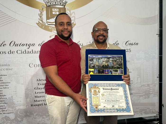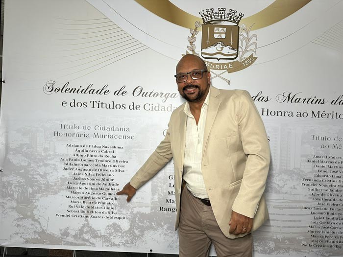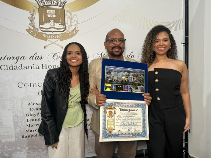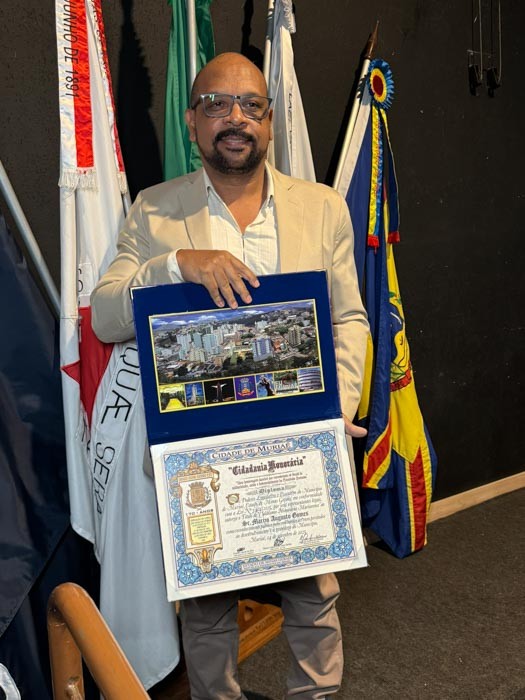 O reconhecimento foi concedido pelo vereador Rev. Wilson Reis, gesto recebido com gratidão por Márcio, que reafirmou sua ligação com Muriaé.