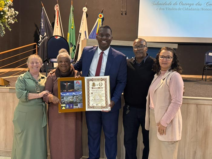 O Dia do Muriaeense também foi momento de reconhecer histórias ligadas à juventude, ao associativismo e ao cooperativismo. O especialista em produtos bancários Maycon Paulo da Silva recebeu o Título de Honra ao Mérito.