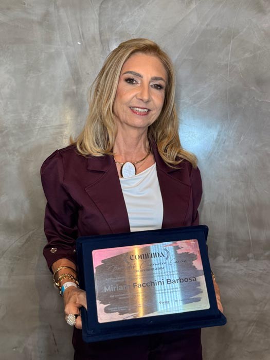 Com emoção, Miriam Facchini Barbosa agradeceu ao vereador Dr. Geron Varella Neto pela indicação, destacando a honra de ter sua trajetória reconhecida e reafirmando seu compromisso com as causas públicas e com a defesa das mulheres muriaeenses.