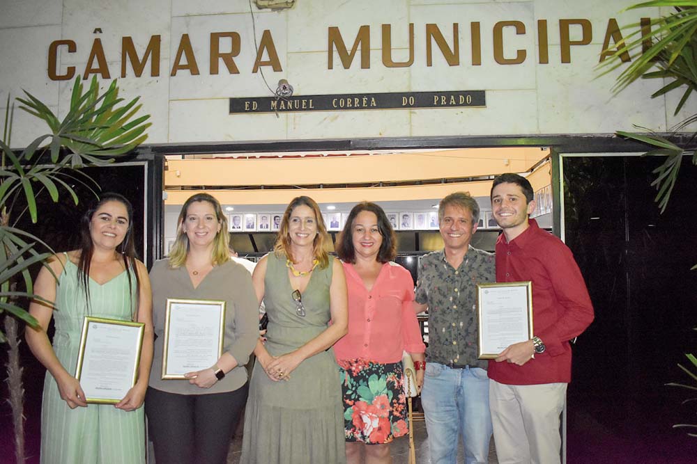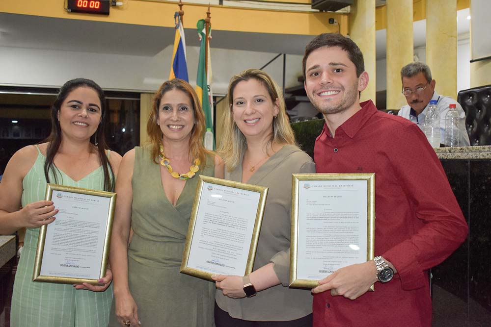 Três profissionais da Unidade Básica de Saúde (UBS) do bairro São Pedro foram agraciados, na noite de terça-feira (1º), com moções de aplausos na Câmara Municipal de Muriaé. Em homenagem oferecida pela vereadora Helena Carvalho, receberam moções a pediatra Dra. Raquel Montesano Carvalho, a enfermeira Rosalinda Soares da Costa e o dentista Dr. José Luiz Cascelli Nogueira da Cunha.