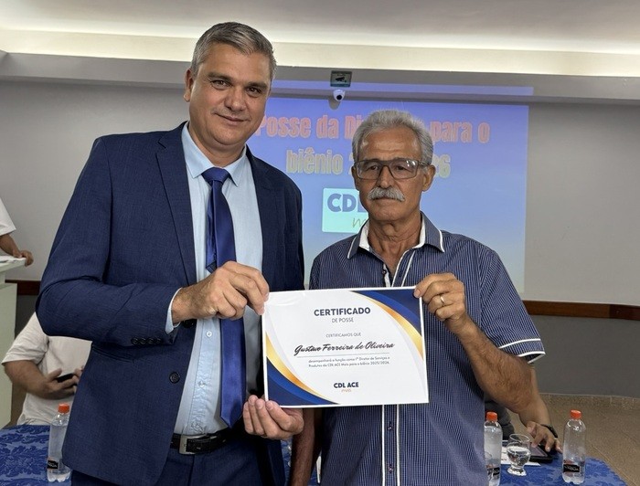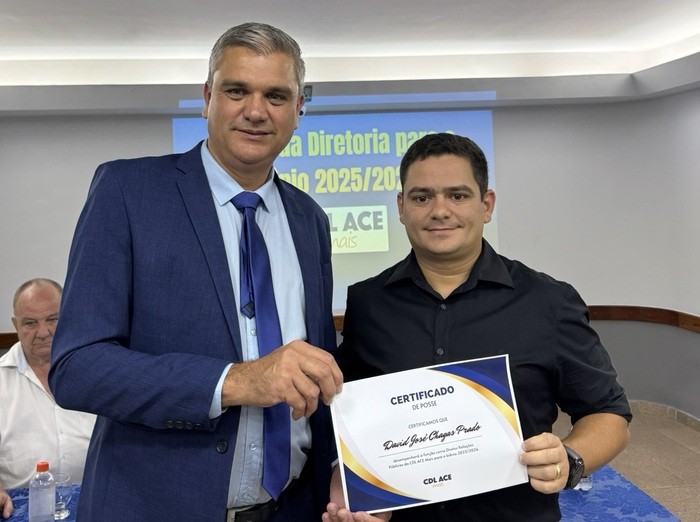 Além da posse de Eduardo Monteiro, a cerimônia também apresentou a nova diretoria da CDL ACE Mais para o biênio 2025-2026. A equipe, que agora conta com Henrique Lourenço como vice-presidente, foi formada para continuar promovendo avanços no comércio local e trabalhar em conjunto para implementar as propostas da nova gestão.