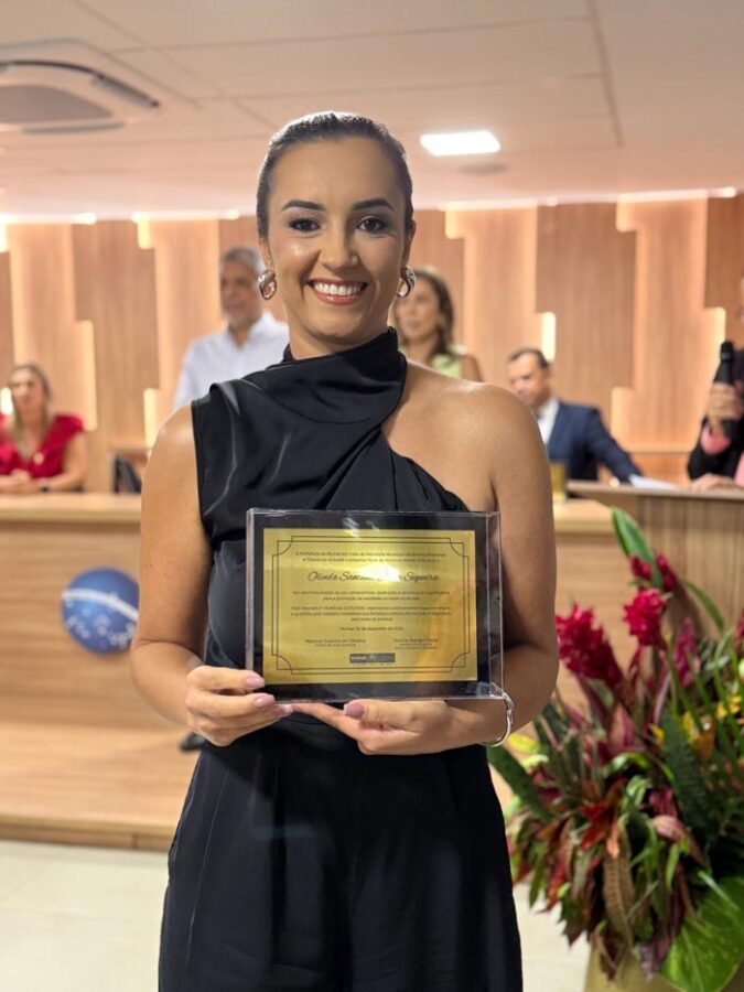 A assistente social Olinda Santana Souza Siqueira foi homenageada na noite desta quinta-feira com o Título Zilda Arns, em reconhecimento a uma trajetória marcada pela defesa intransigente dos direitos humanos, pela promoção da cidadania e pelo compromisso permanente com a dignidade de cada pessoa. O momento foi um dos mais emocionantes da solenidade, ressaltando a relevância de sua atuação para o município e para o estado.