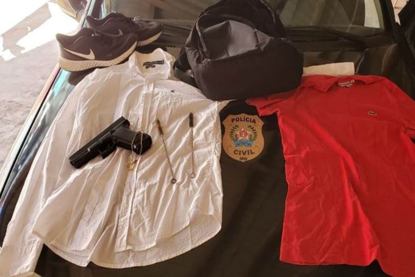 Após apurações, também foi cumprido mandado de busca e apreensão na residência do investigado, onde foram localizados diversos objetos que teriam sido utilizados na prática delitiva, entre eles, roupas e mochila, assim como um simulacro de arma de fogo e joias.
