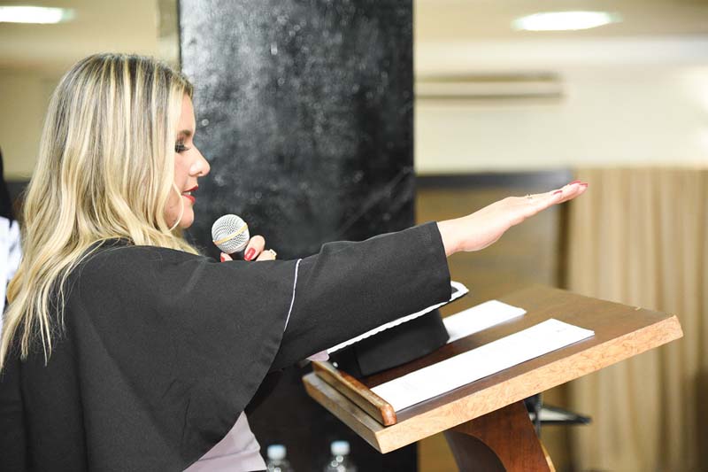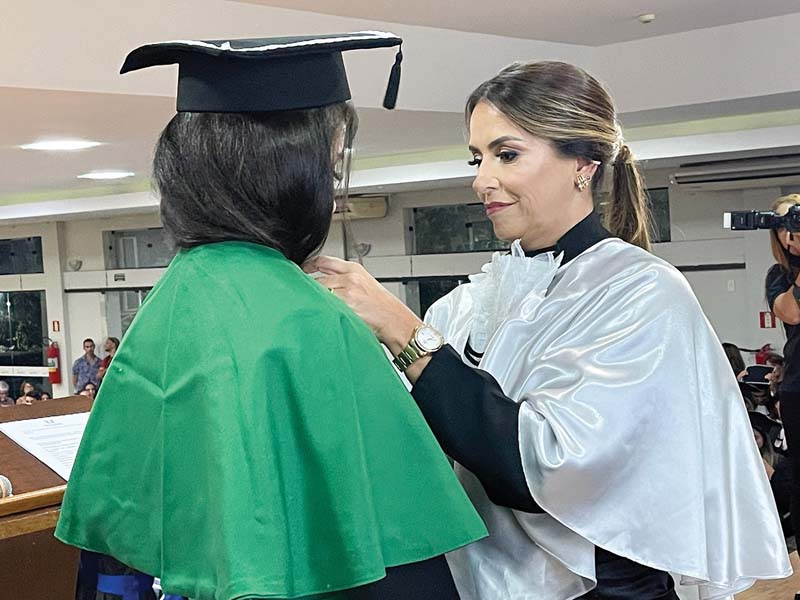 As formandas Ana Paula Baptista Tosta Ramos e Fernanda dos Santos Costa Marun, fizeram o juramento em nome de todos os colegas, prometendo aplicar os conhecimentos com ética, firmeza e honestidade. Já a mensagem final com os agradecimentos e homenagem a Deus, pais e mestres ficou por conta do apresentador Paulo de Souza.