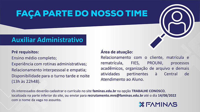 Faminas e Covepe abrem vaga de emprego